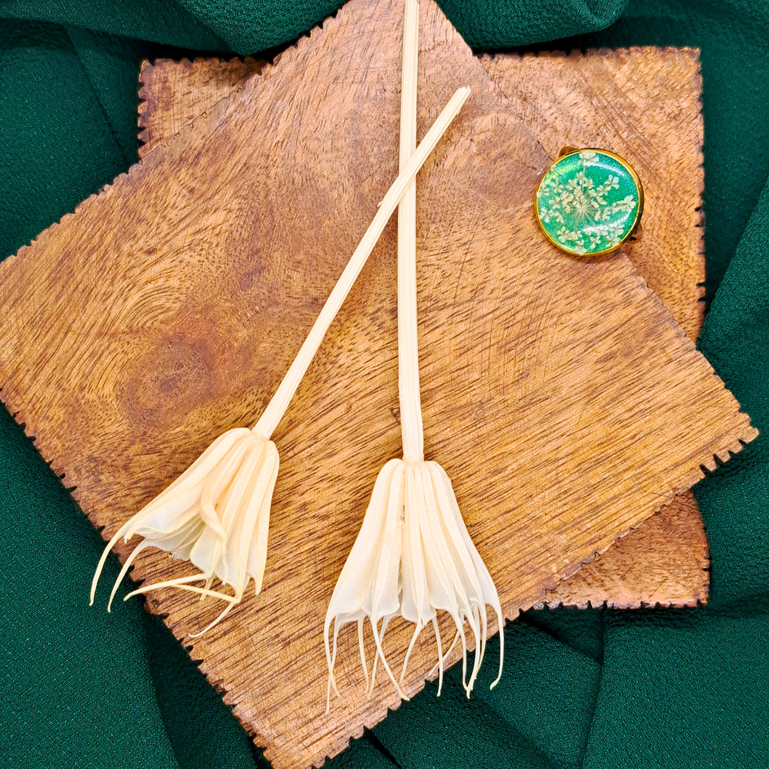 Embrace nature’s elegance with this handcrafted ring, designed to bring a subtle touch of organic beauty to your everyday style. Featuring delicate real white pressed flowers set in green resin, each piece is one of a kind, capturing the soft beauty of natural elements. The gold-plated stainless steel setting offers a luxurious finish while ensuring durability, tarnish resistance, and comfort for most sensitive skin. Lightweight and elegant, this nature-inspired ring is perfect for both casual wear and special occasions.