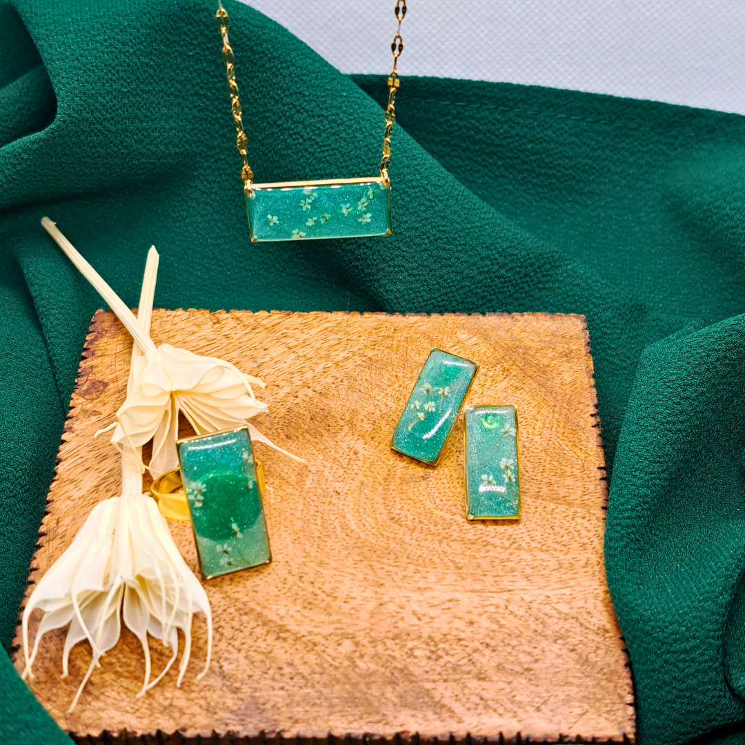 Embrace nature’s elegance with this handcrafted necklace, designed to bring a subtle touch of organic beauty to your everyday style. Featuring delicate real white pressed flowers set in green resin, each piece is one of a kind, capturing the soft beauty of natural elements. The gold-plated stainless steel setting offers a luxurious finish while ensuring durability, tarnish resistance, and comfort for most sensitive skin. Perfect for layering or wearing on its own, this nature-inspired necklace adds a refined, organic charm to both casual looks and special occasions.